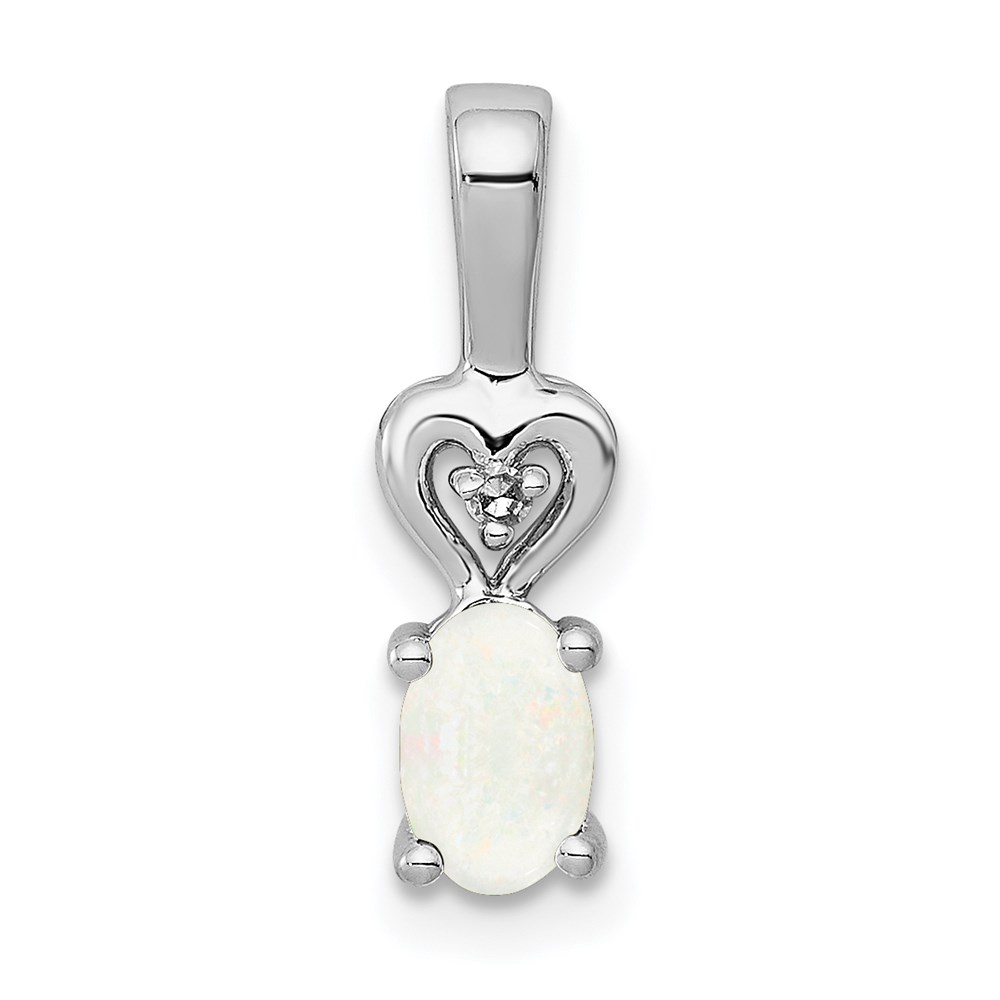 Sterling Silver Rhodium-plated Created Opal & Diam. Pendant