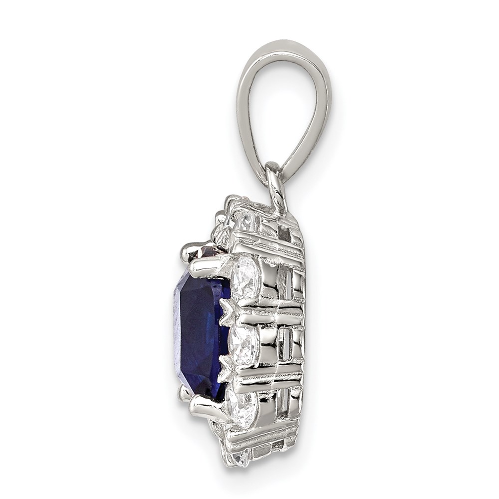 Sterling Silver Rhodium-plated CZ and Blue Glass Pendant