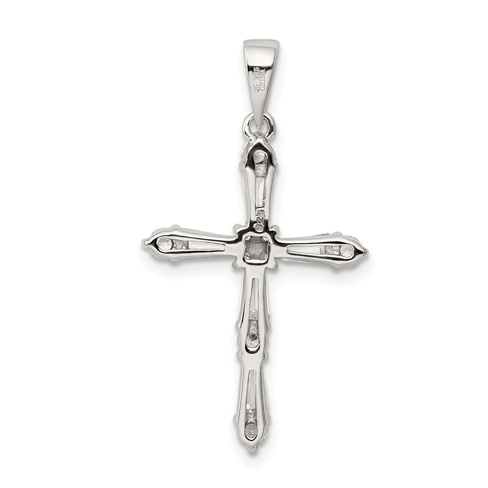 Sterling Silver Rhodium-plated CZ Cross Pendant