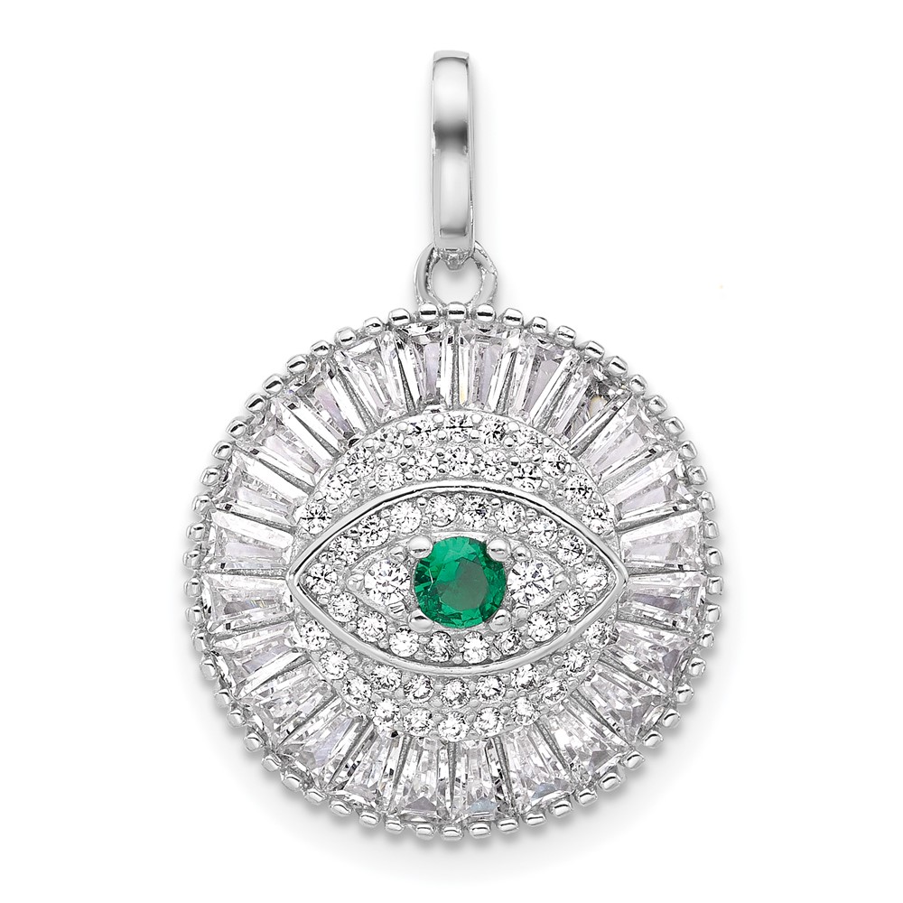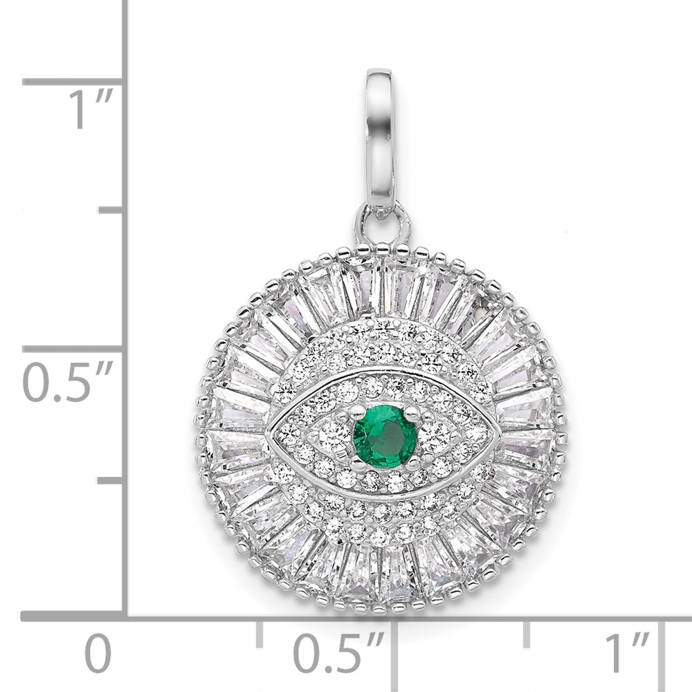Sterling Silver Rhodium-plated CZ Evil Eye Pendant