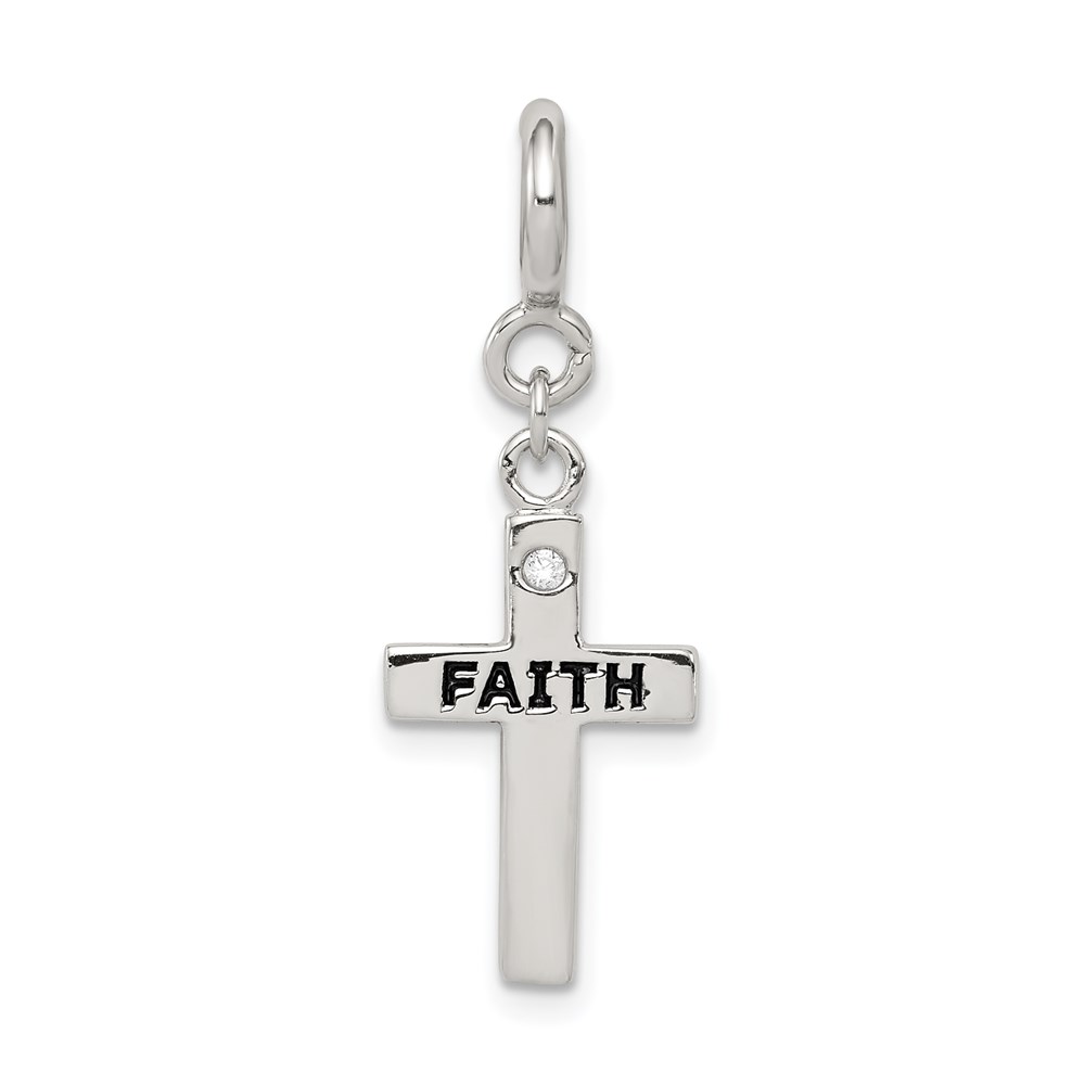 Sterling Silver Rhodium-plated CZ Faith Cross Clip-on Charm