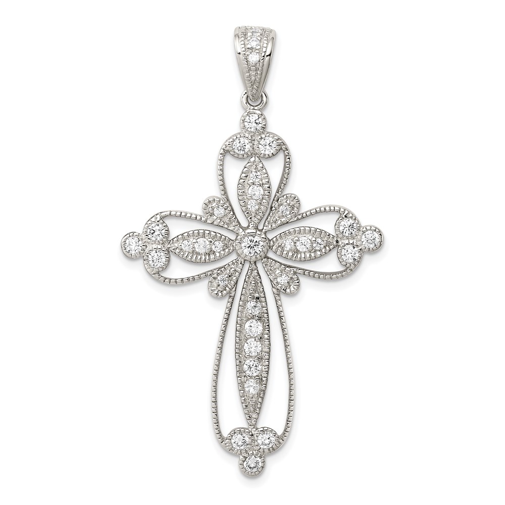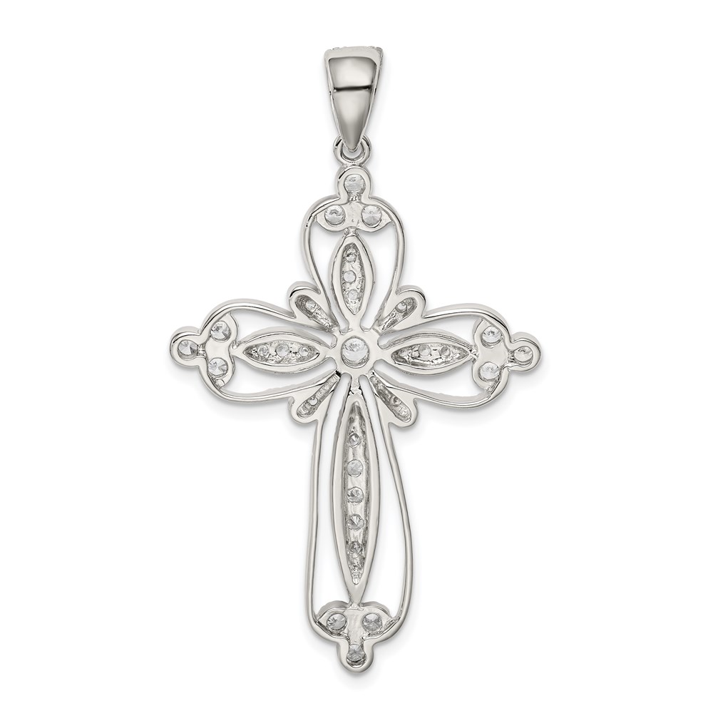 Sterling Silver Rhodium-plated CZ Cross Pendant