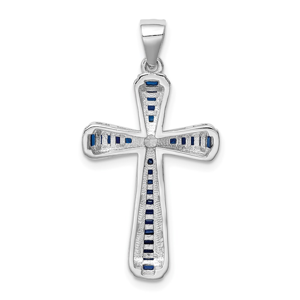 Sterling Silver Rhodium-plated CZ & Lab Cr. Blue Spinel Cross Pendant