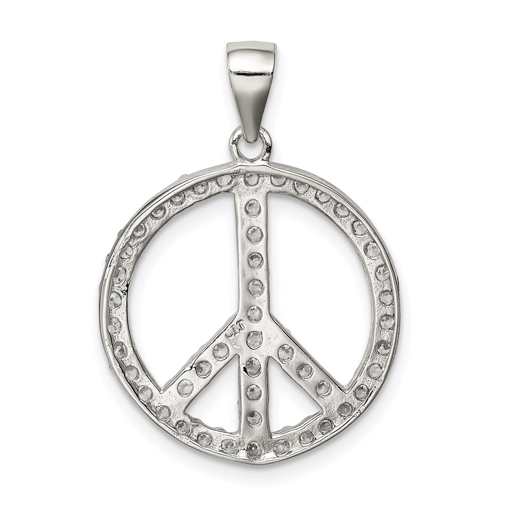 Sterling Silver Rhodium-plated CZ Peace Symbol Pendant