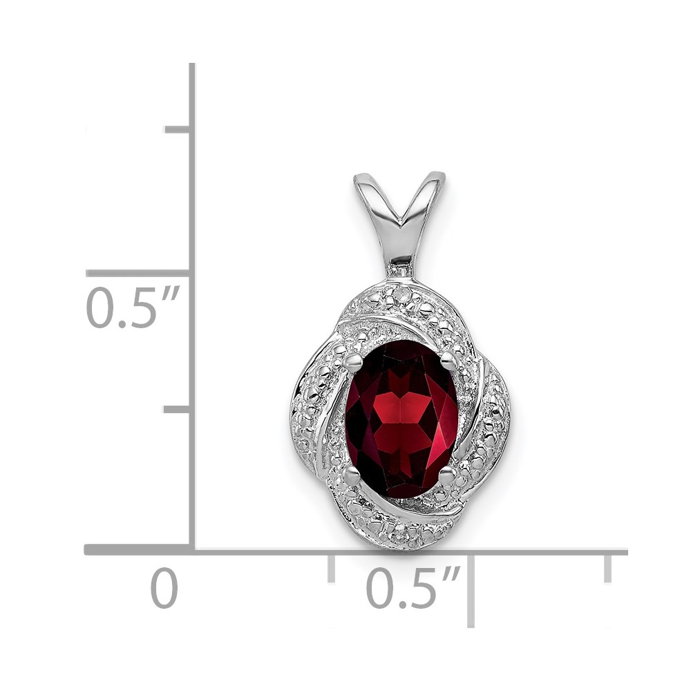 Sterling Silver Rhodium-plated Diam. & Garnet Pendant