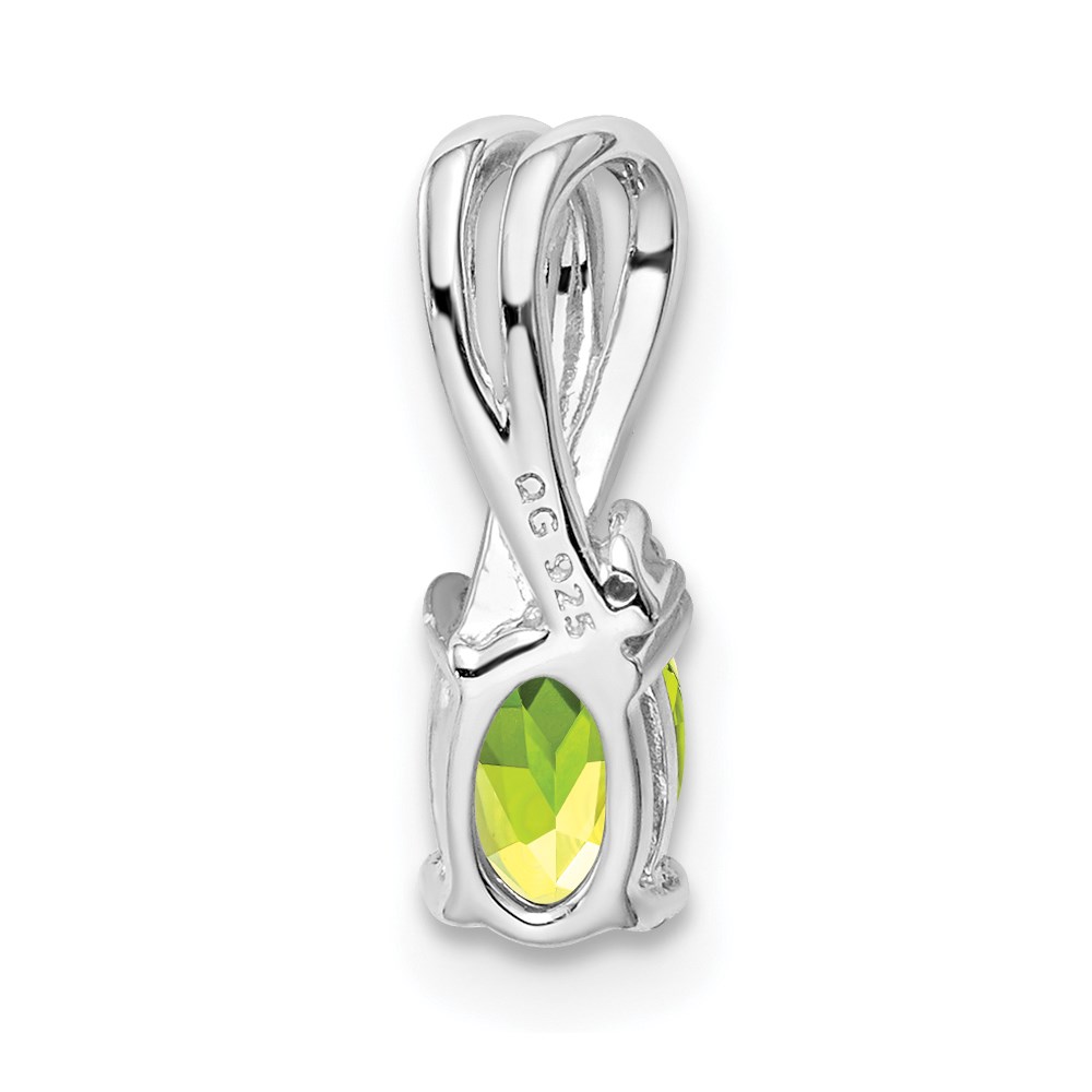 Sterling Silver Rhodium Plated Diamond and Peridot Oval Pendant