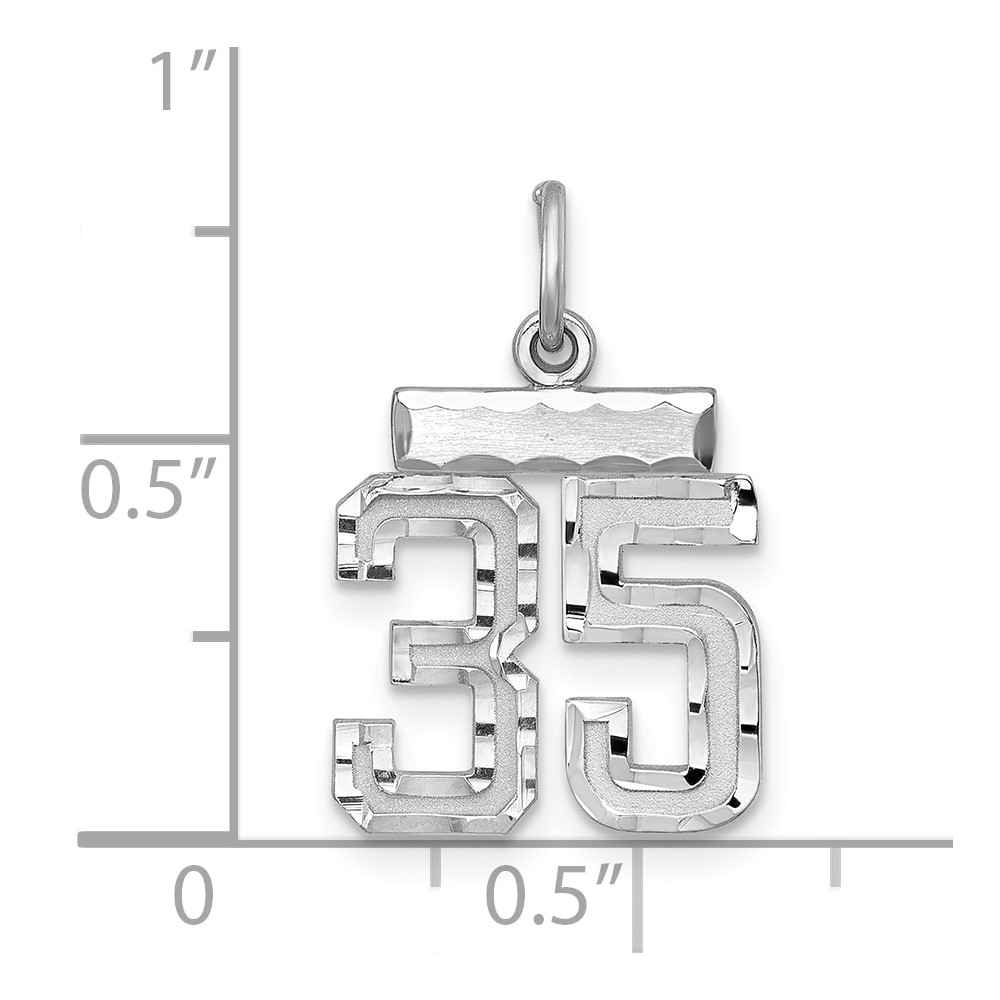 Sterling Silver Rhodium-plated Diamond-cut #35 Charm