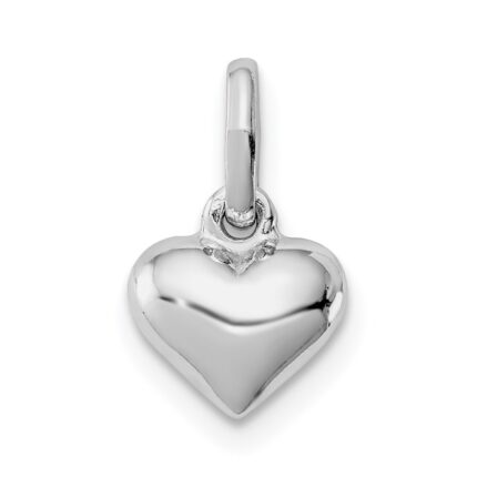 Sterling Silver Rhodium-plated Diamond-cut Puffed Heart Pendant