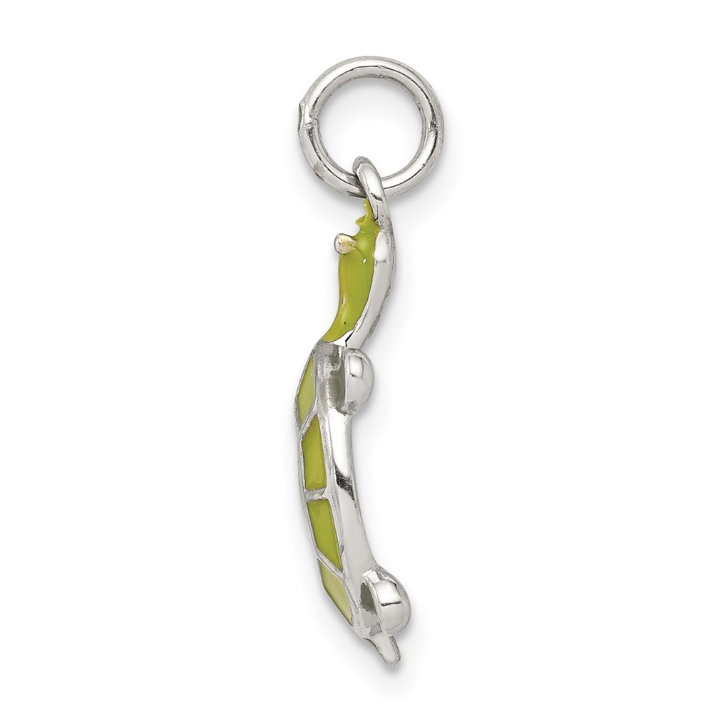Sterling Silver Rhodium-plated Green Enameled Turtle Pendant