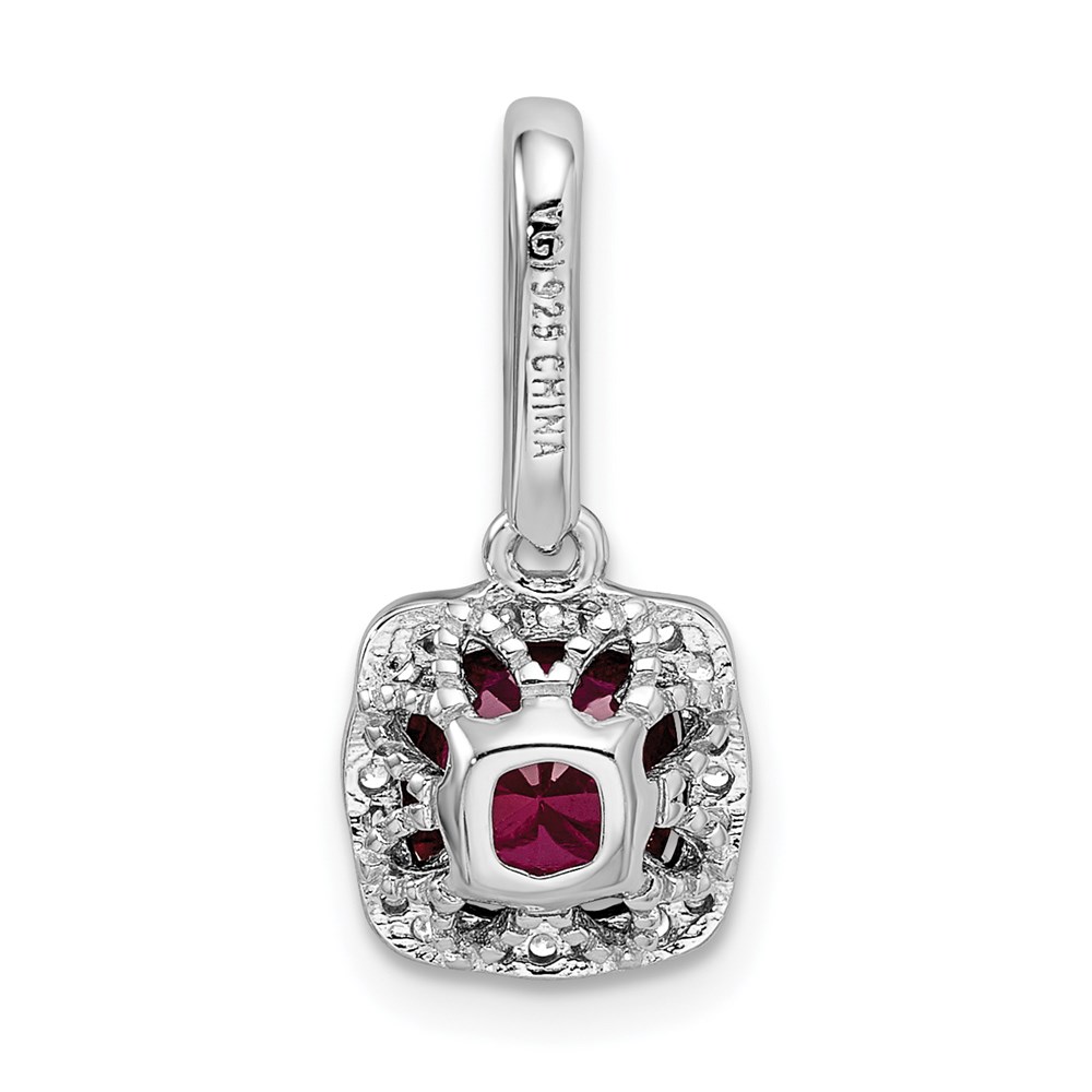 Sterling Silver Rhodium-plated Lab Created Red Corundum and White CZ Pendant