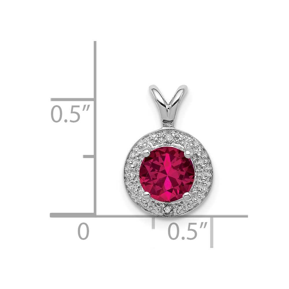 Sterling Silver Rhodium Plated Lab Created Ruby and .010 ctw Diamond Halo Pendant
