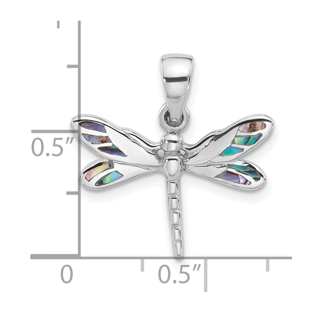 Sterling Silver Rhodium-Plated Polished Abalone Dragonfly Pendant
