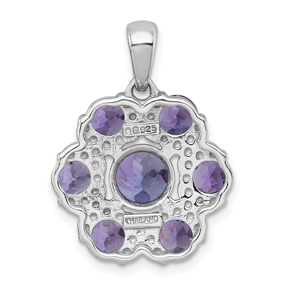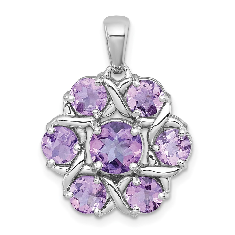 Sterling Silver Rhodium-plated Polished Amethyst and Rose de France Quartz Flower Pendant