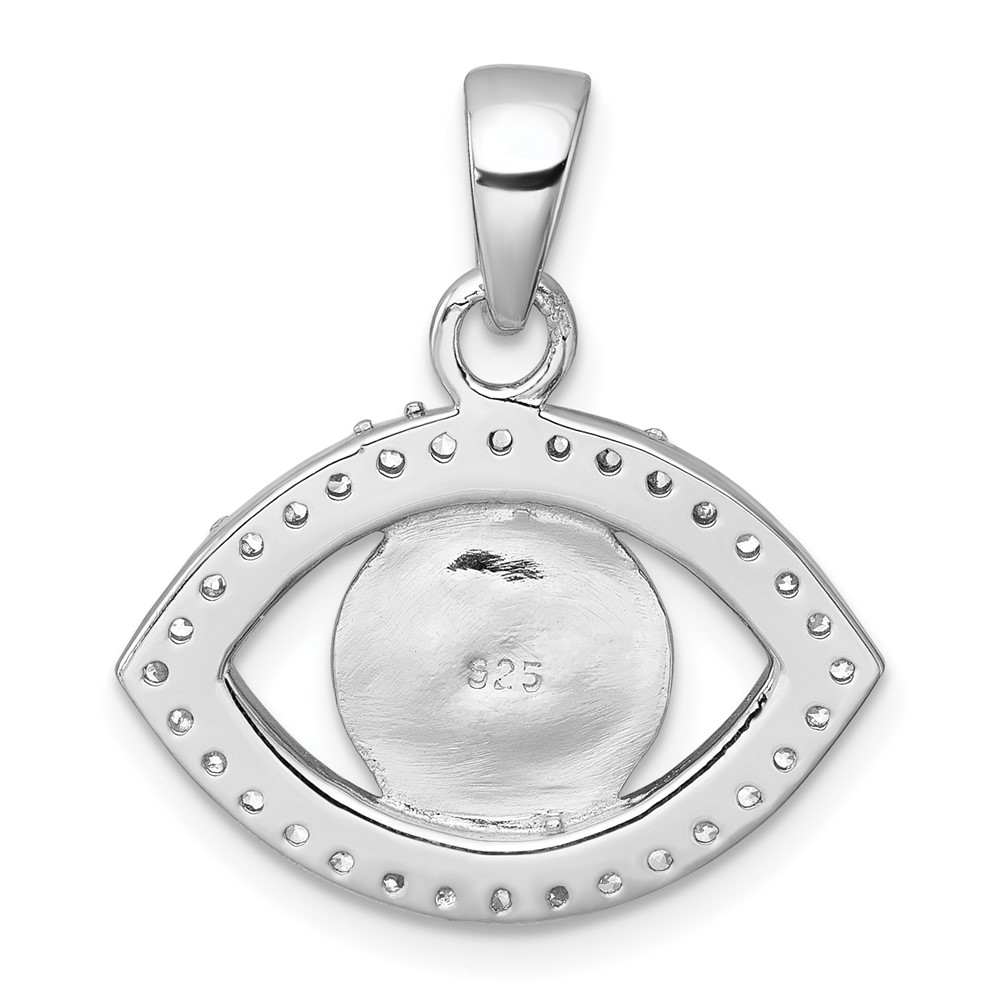 Sterling Silver Rhodium-plated Polished CZ and Glass Stone Evil Eye Pendant