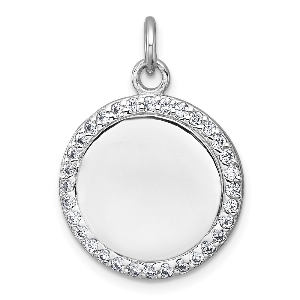 Sterling Silver Rhodium-plated Polished CZ Engraveable Circle Pendant
