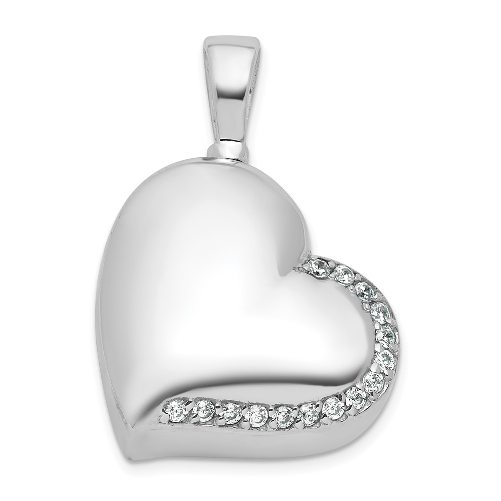 Sterling Silver Rhodium-plated Polished CZ Heart Ash Holder Pendant