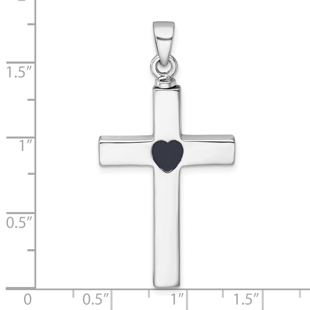 Sterling Silver Rhodium-plated Polished Latin Cross with Enameled Heart Ash Holder Pendant