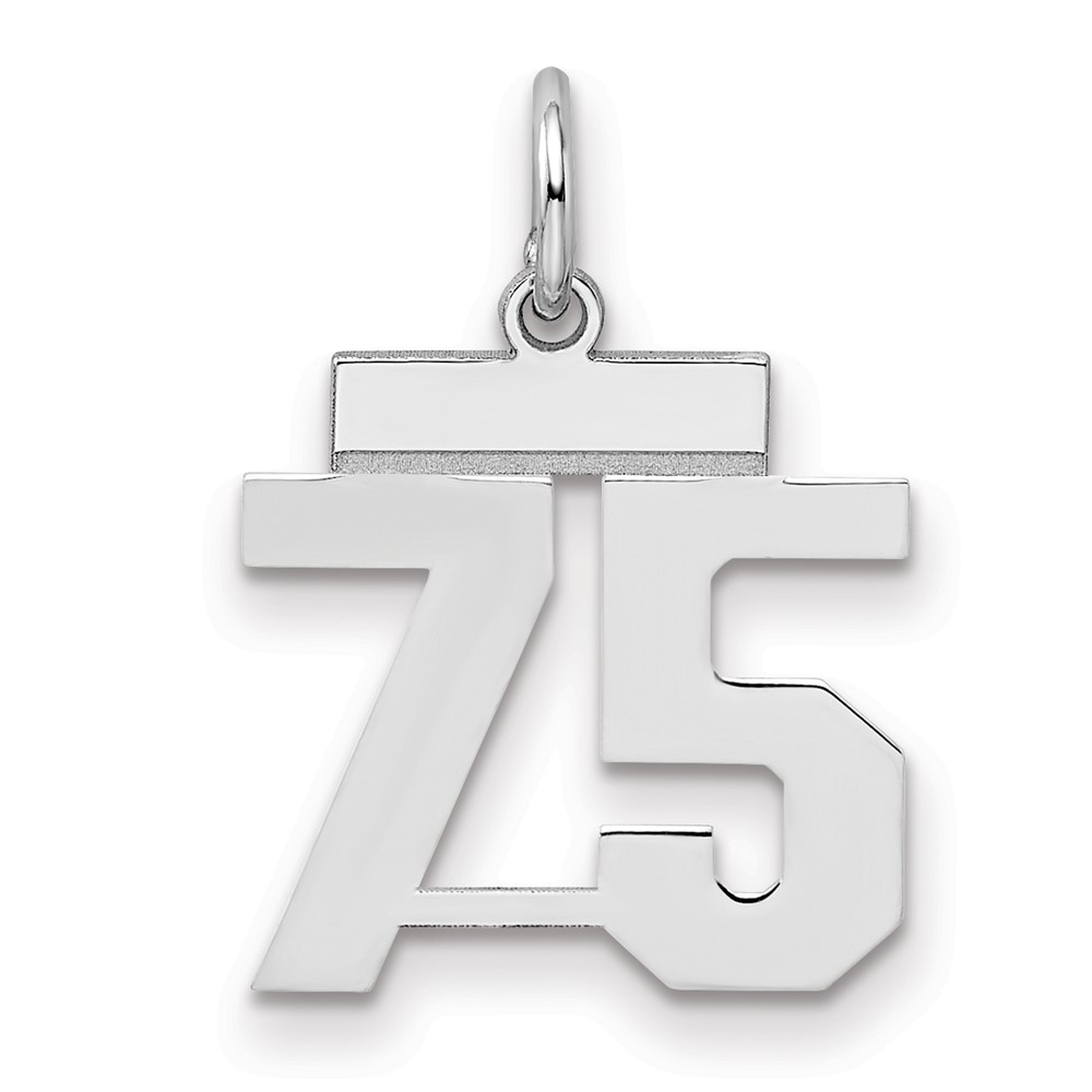 Sterling Silver/Rhodium-plated Polished Number 75 Charm