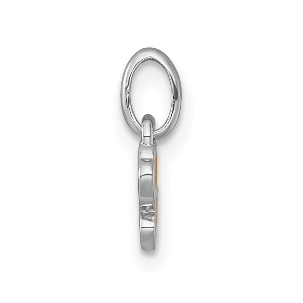 Sterling Silver Rhodium-plated Polished Orange/Red/Green Enamel Flower With Heart Childrens Pendant