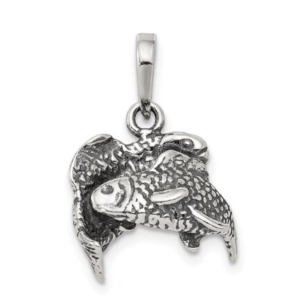 Sterling Silver Rhodium-plated Polished Reversible Pisces Fish in Circle Zodiac Pendant