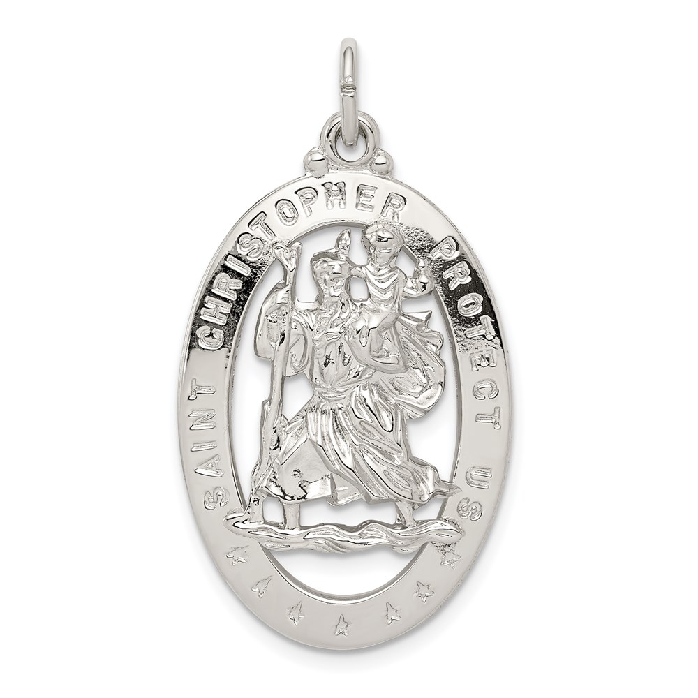 Sterling Silver Rhodium-plated Saint Christopher Medal