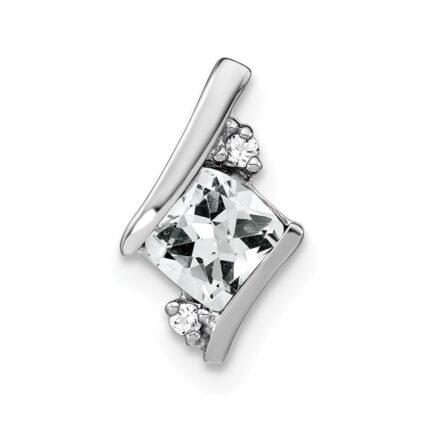 14k White Gold 7mm Cushion April/White Topaz and Diamond Chain Slide