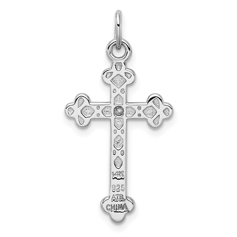 Sterling Silver Rhodium-plated with 14k Accent Polished CZ Budded Cross Pendant