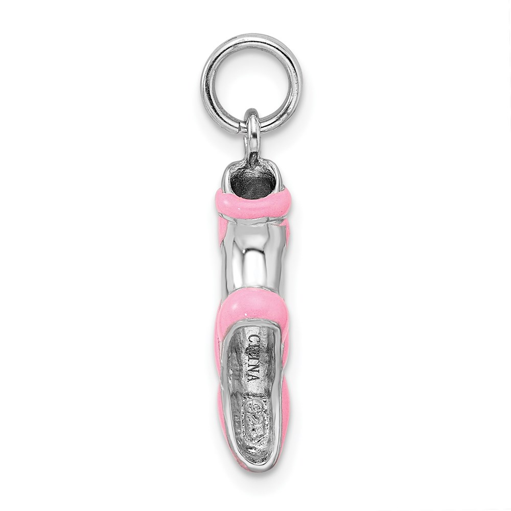 Sterling Silver Rhodium-platedPink Enamel Ballet Slipper Charm