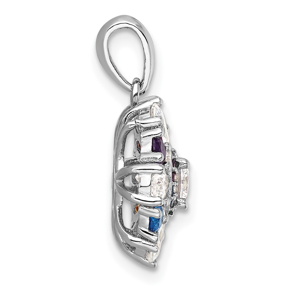 Sterling Silver Rhodium-pltd Rainbow Nano Crystal &Clear CZ Floral Pendant