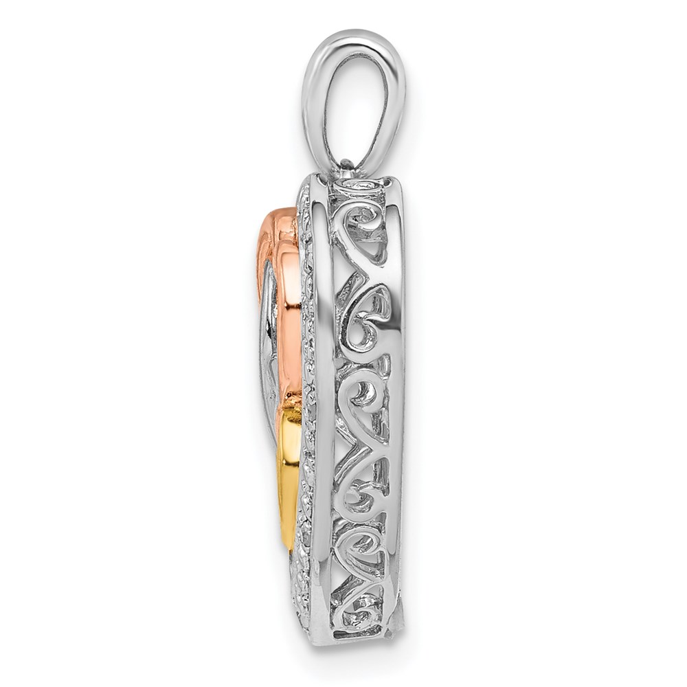 Sterling Silver Rhodium w/White, Yellow, & Rose Gold Plating Diamond Heart Pendant