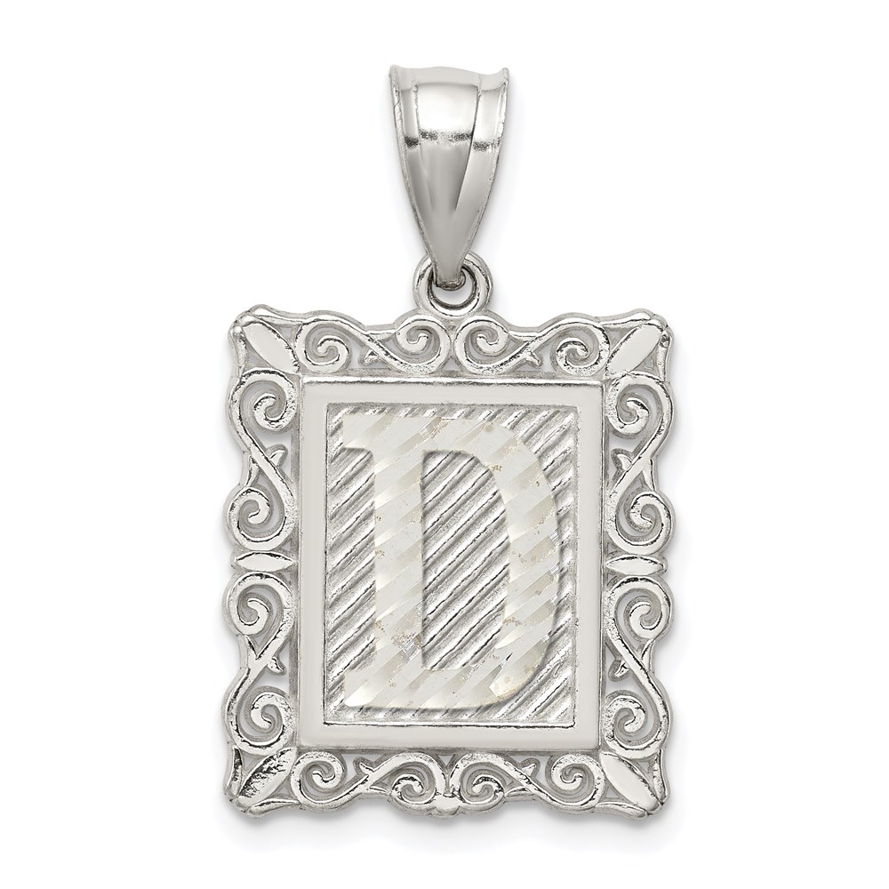 Sterling Silver Square Diamond-cut Letter D Initial Pendant