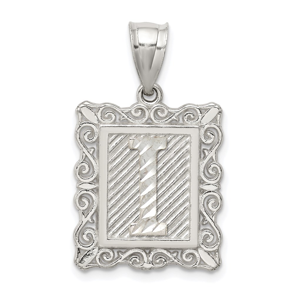 Sterling Silver Square Diamond-cut Letter I Initial Pendant