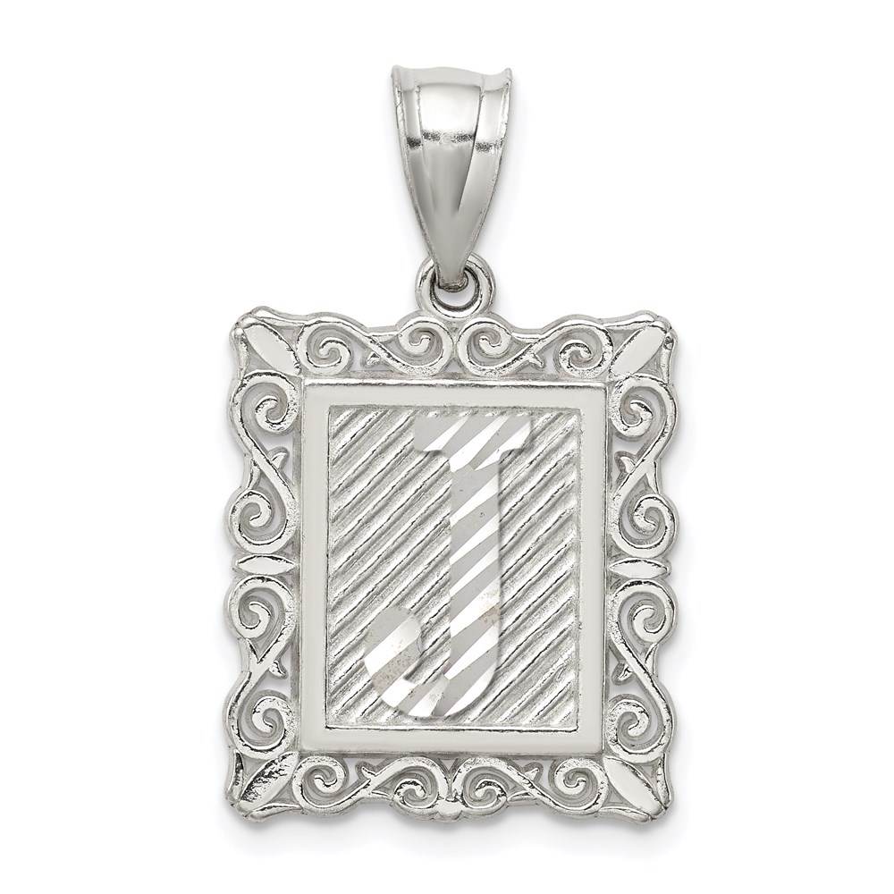 Sterling Silver Square Diamond-cut Letter J Initial Pendant