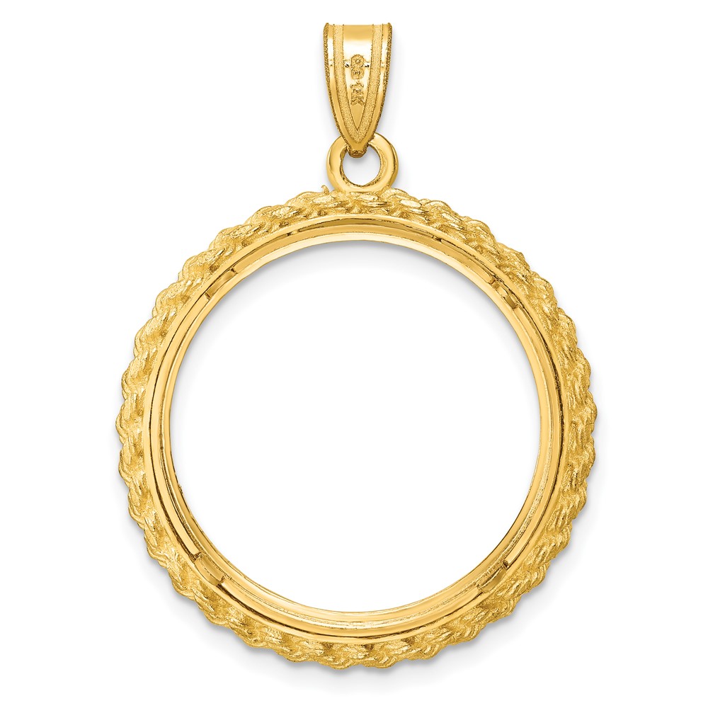 Wideband Distinguished Coin Jewelry 14k Polished and Diamond-cut with Casted Rope 22.0mm Prong Coin Bezel Pendant