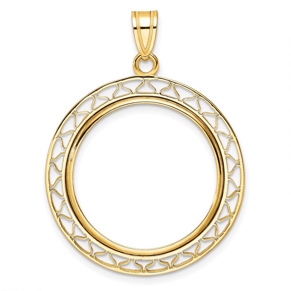 Wideband Distinguished Coin Jewelry 14k Polished Fancy 27.0mm Prong Coin Bezel Pendant