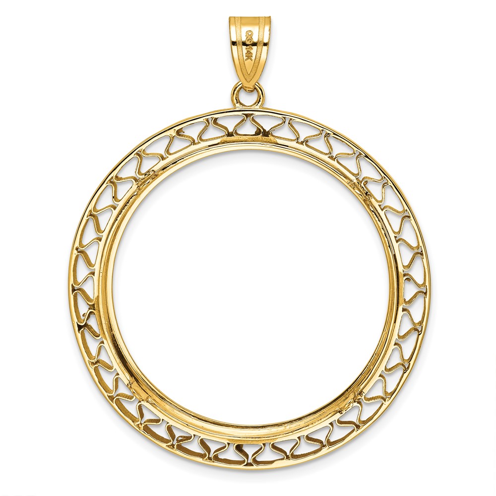 Wideband Distinguished Coin Jewelry 14k Polished Fancy 27.0mm Prong Coin Bezel Pendant