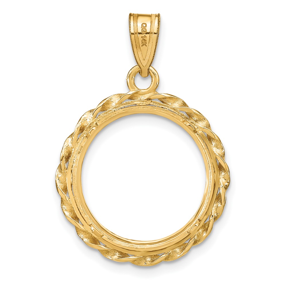 Wideband Distinguished Coin Jewelry 14k Polished Wide Twisted Wire 16.5mm Prong Coin Bezel Pendant