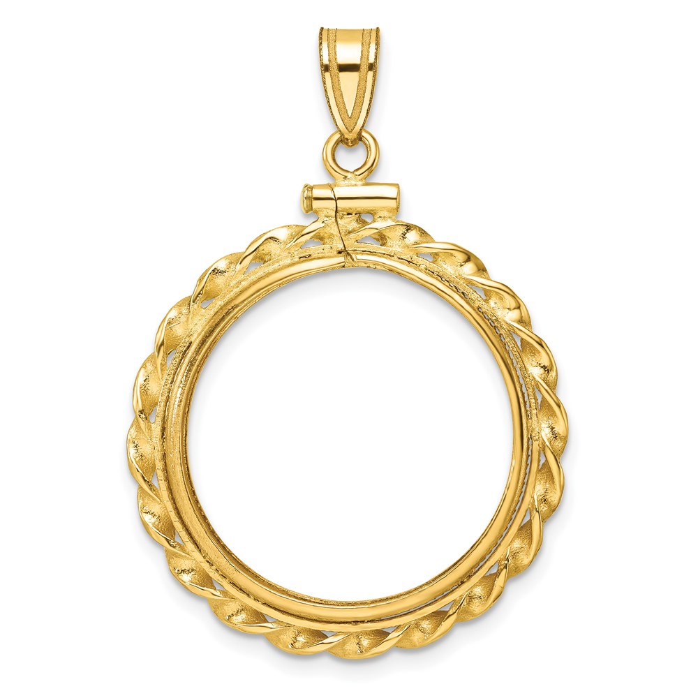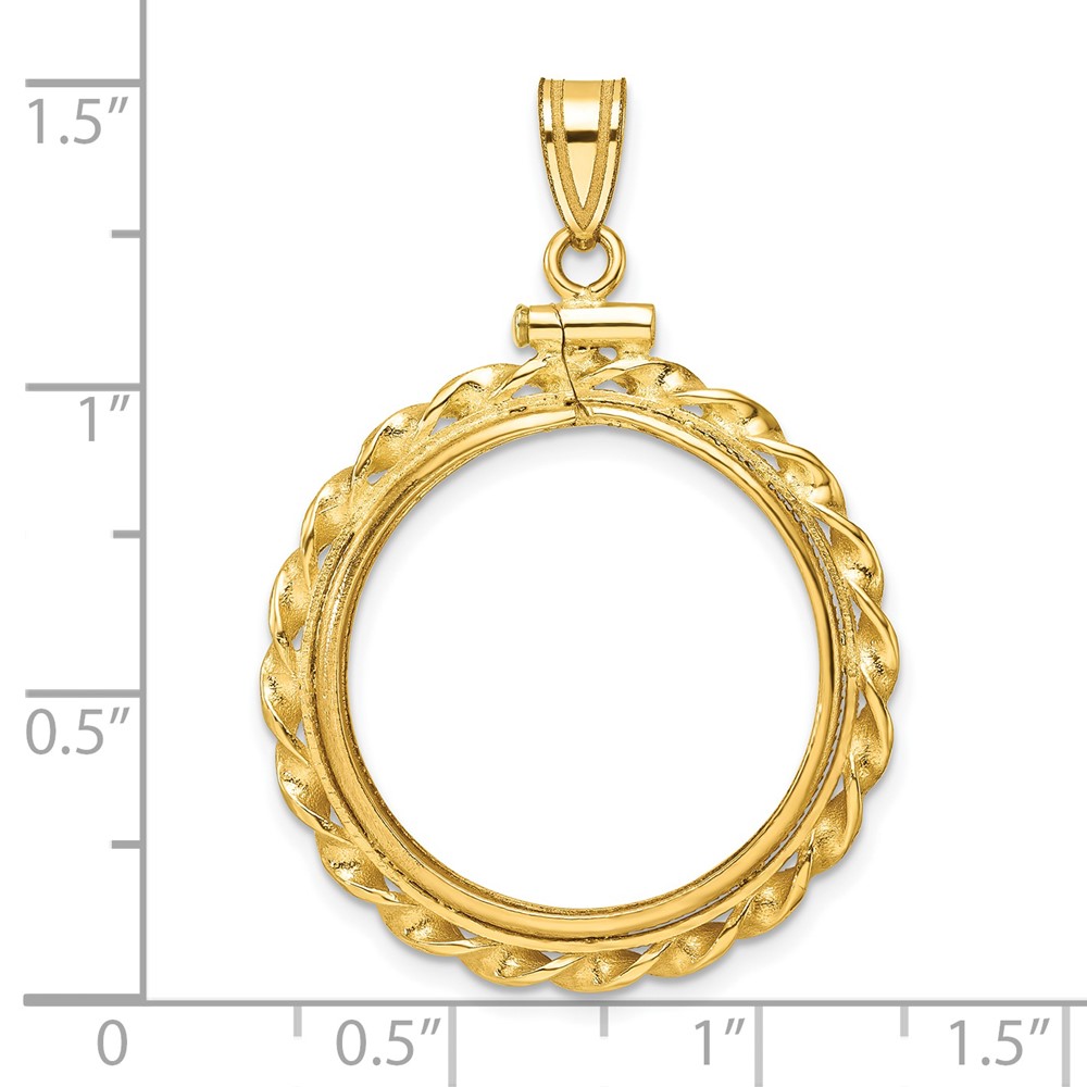 Wideband Distinguished Coin Jewelry 14k Polished Wide Twisted Wire 22.0mm x 1.9mm Screw Top Coin Bezel Pendant