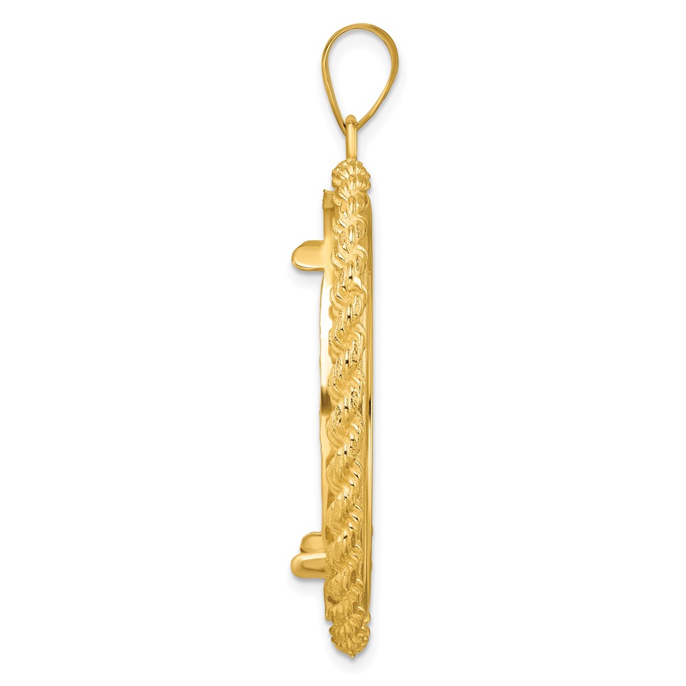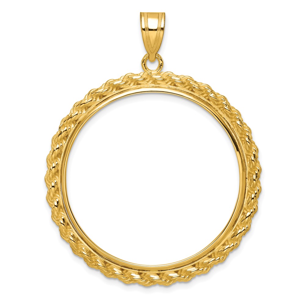 Wideband Distinguished Coin Jewelry 14k Polished with Casted Rope 32.7mm Prong Coin Bezel Pendant