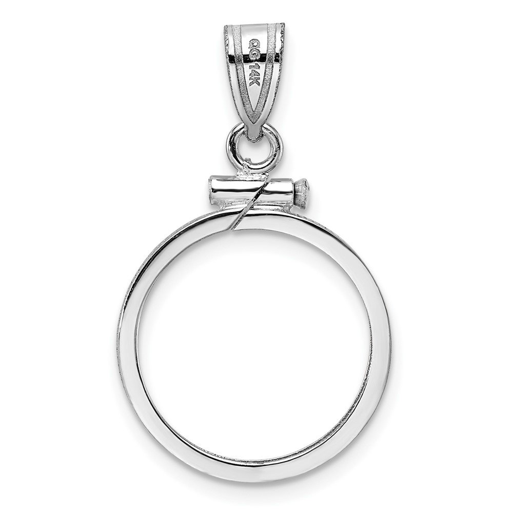 Wideband Distinguished Coin Jewelry 14k White Gold Polished 16.5mm x 1.35mm Screw Top Coin Bezel Pendant