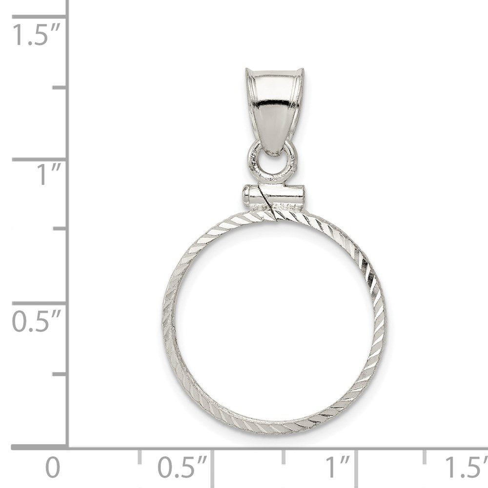 Wideband Distinguished Coin Jewelry Sterling Silver Polished and Diamond-cut 19.1 x 1.5mm $0.01 Screw Top Coin Bezel Pendant