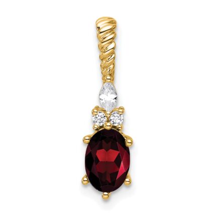 14K Diamond and 7×5 Oval June/Rhodolite Garnet Twisted Chain Slide